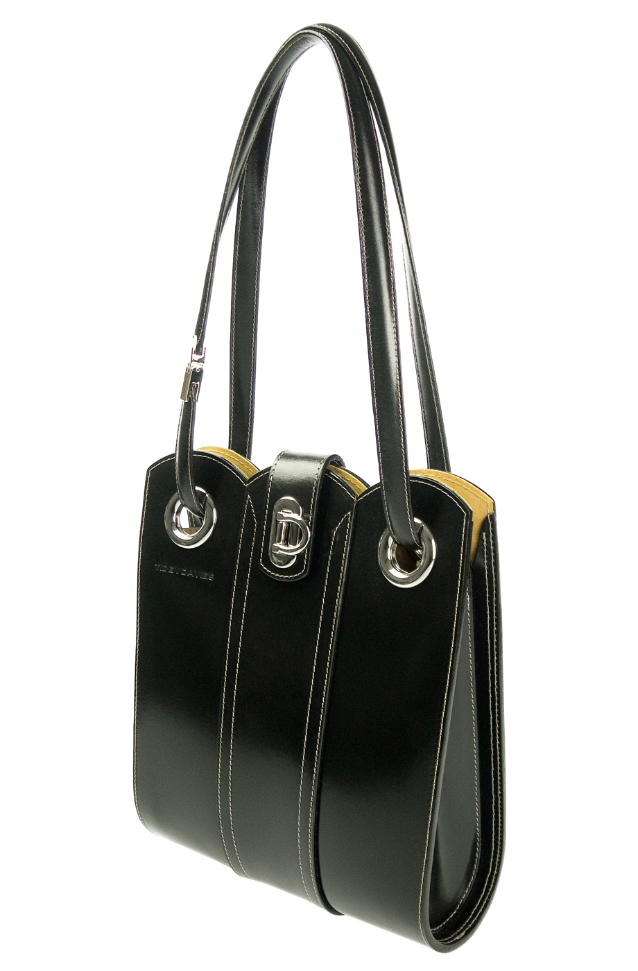 Made in Black vegetable tanned leather with silver coloured hardware, contrasting stitch lines and suede leather lining. An elegant slimline design that can be carried as a handbag or over the shoulder. Strap slides through eyelets to give full length strap if desired.